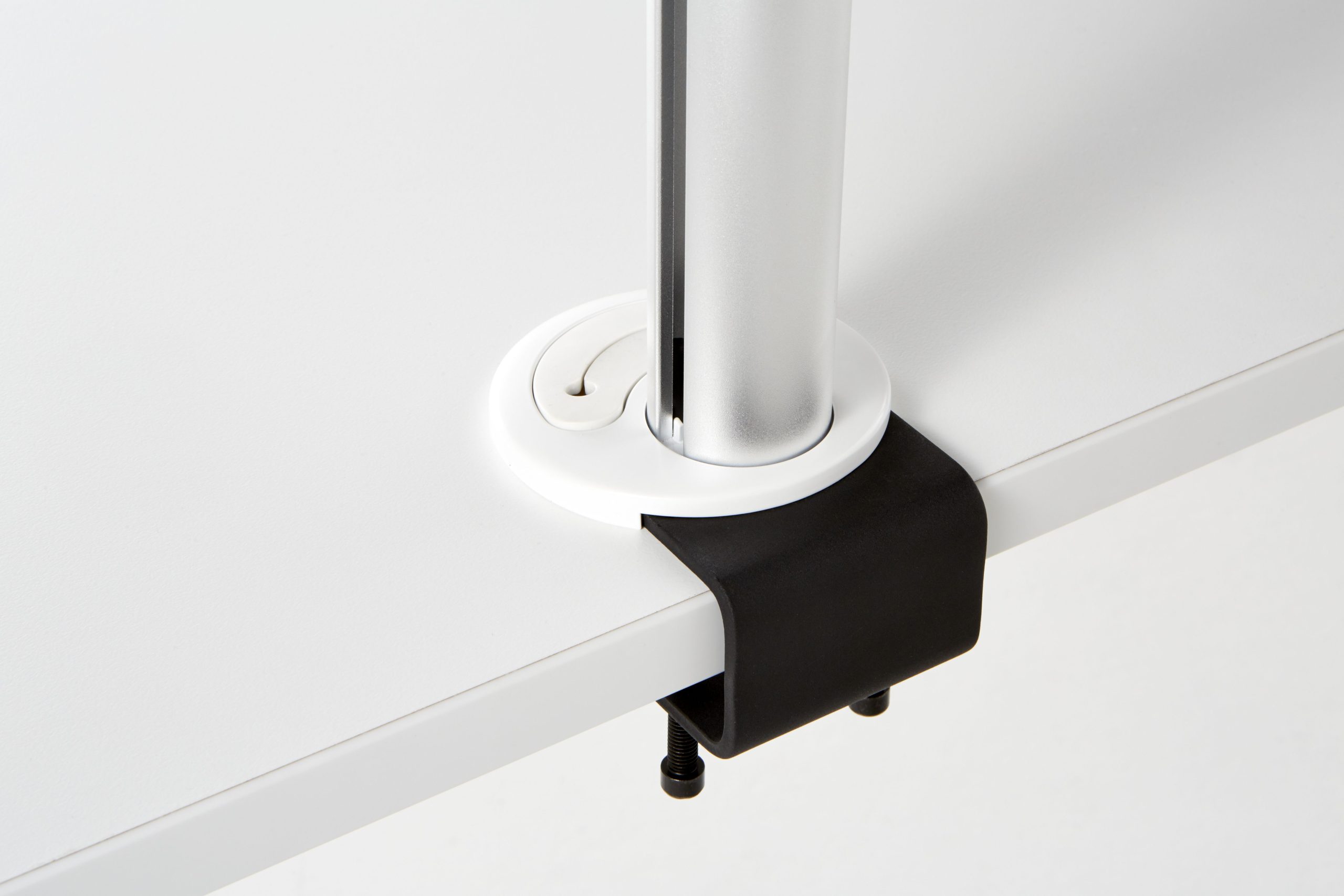 An easy and safe pushbutton mechanism allows the monitor to be adjusted from a seated position. A quick release mechanism with 90-degree portrait to landscape screen rotation and secure fastening option and discreet, effective cable management are stand-out features of this elegant, simple design. Bolt through or desk clamp mounting are both included as standard.