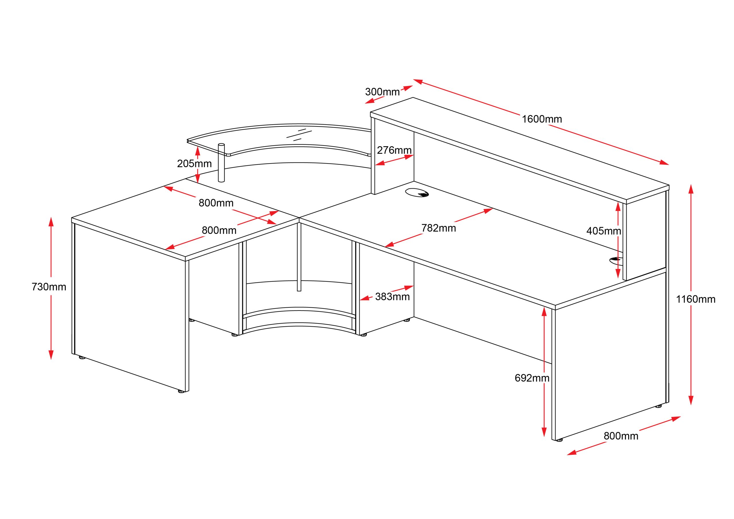 The Rapidline Flow suits large reception areas and is sure to make an impact. Made up of 3 quality pieces including a full height unit at the front, glass top corner unit, and return fitting to either side.