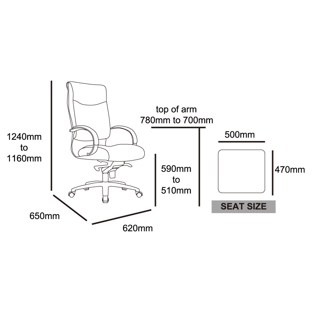 | Dimensions | 1240-1160H x 620W x 650Dmm |