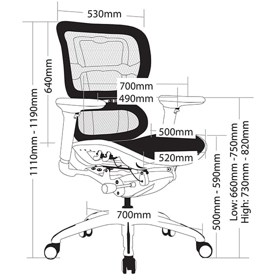 - Adjustable back height (ratchet)