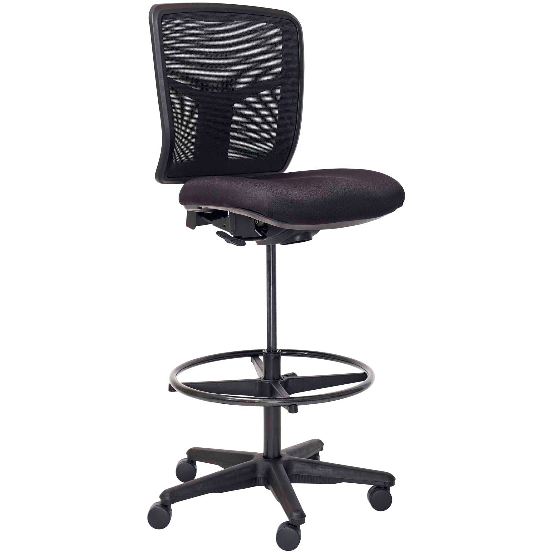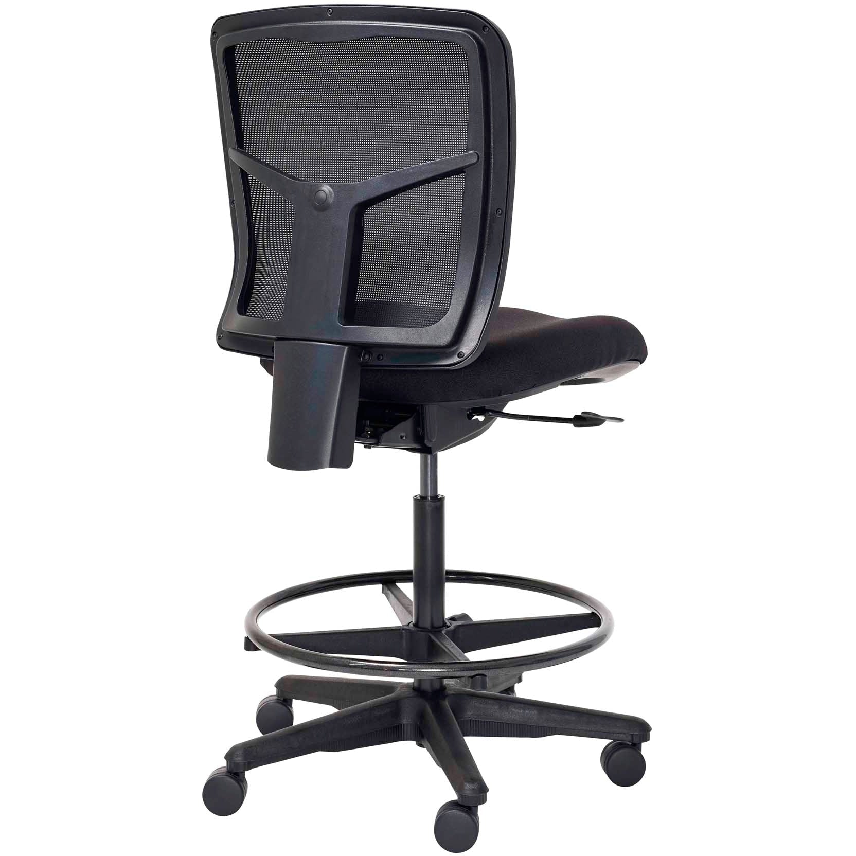 The Mondo Tivoli Drafting is a fabulous mesh drafting chair. If you’ve got a penchant for standing desks (especially a fixed-height standing desk), a high work station you sit at, or you’re just one of those people who likes to sit at your standing height, the Mondo Tivoli Drafting chair is for you. The easy-to-use adjustment and comfy design, including a foot ring, supports you from head to toe in a relaxed position. You’ll be blown away by your productivity! And the final touch: a ventilated mesh backrest. Voila!