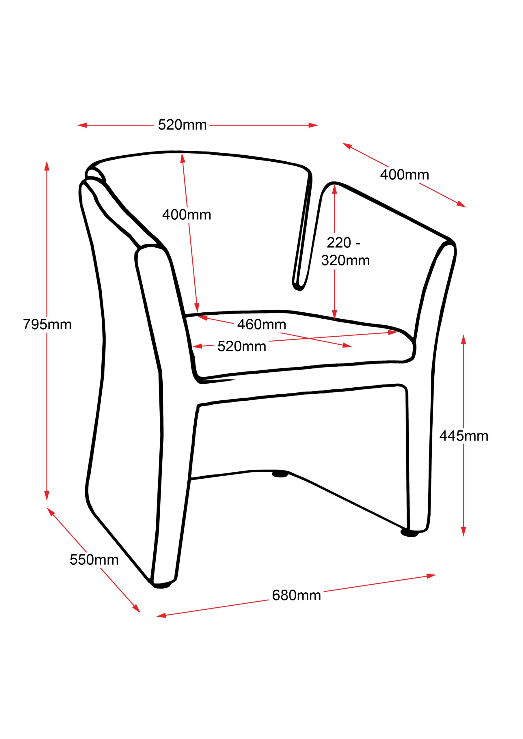 | Dimensions | 680mm (W) x 550mm (D) x 795mm (H) |