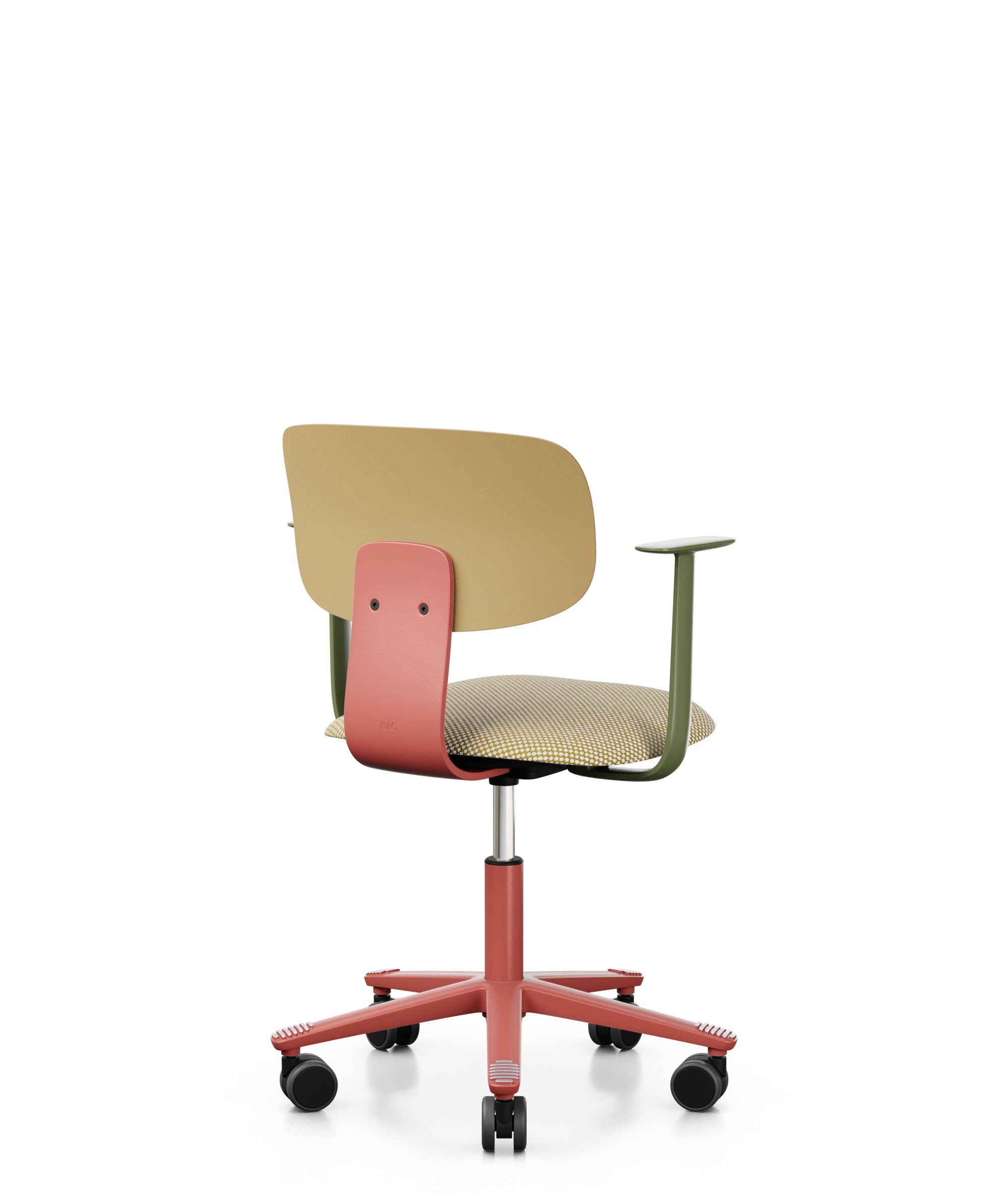 Five star base (Ø620 mm) with foot supports in solid recycled aluminium, is available in several colours.