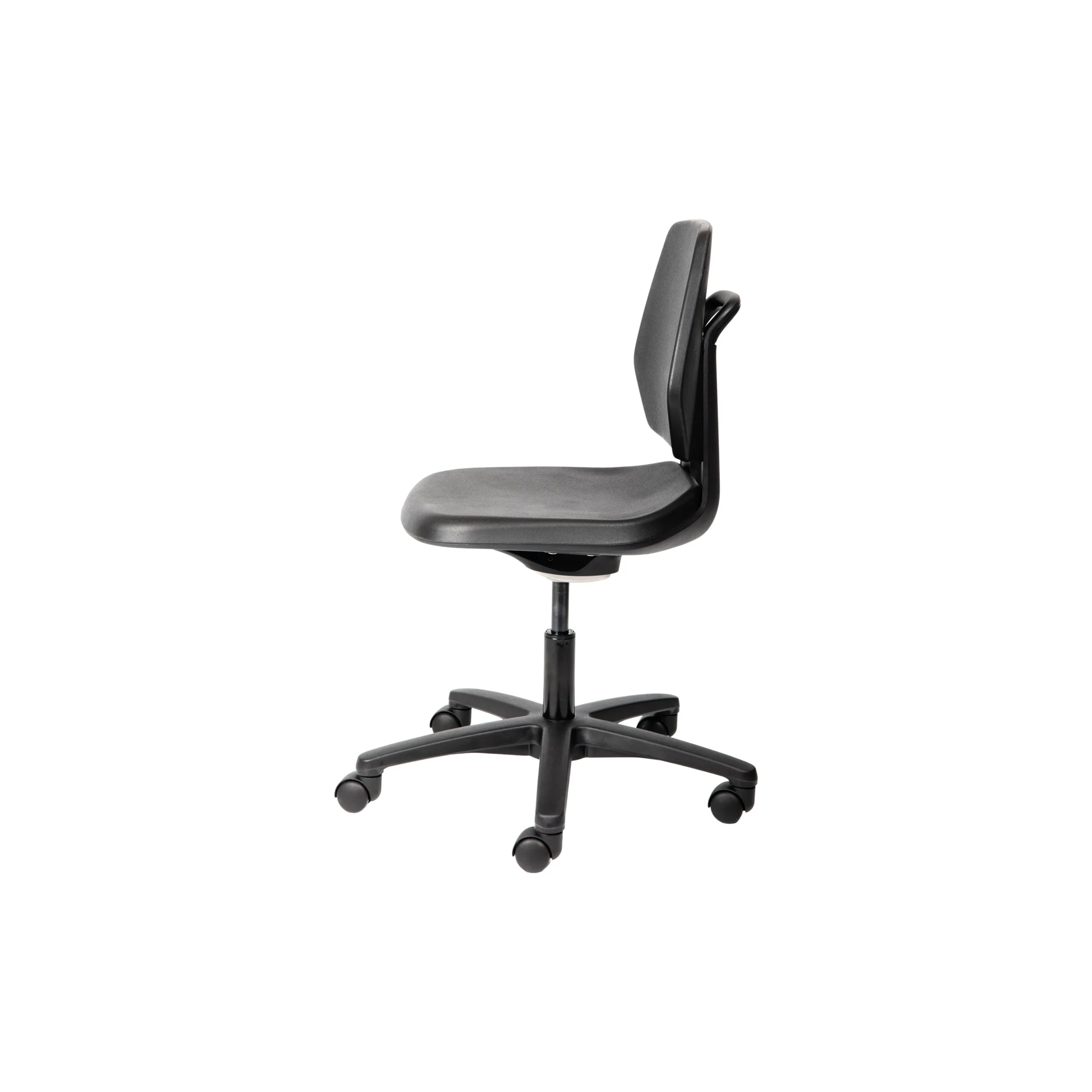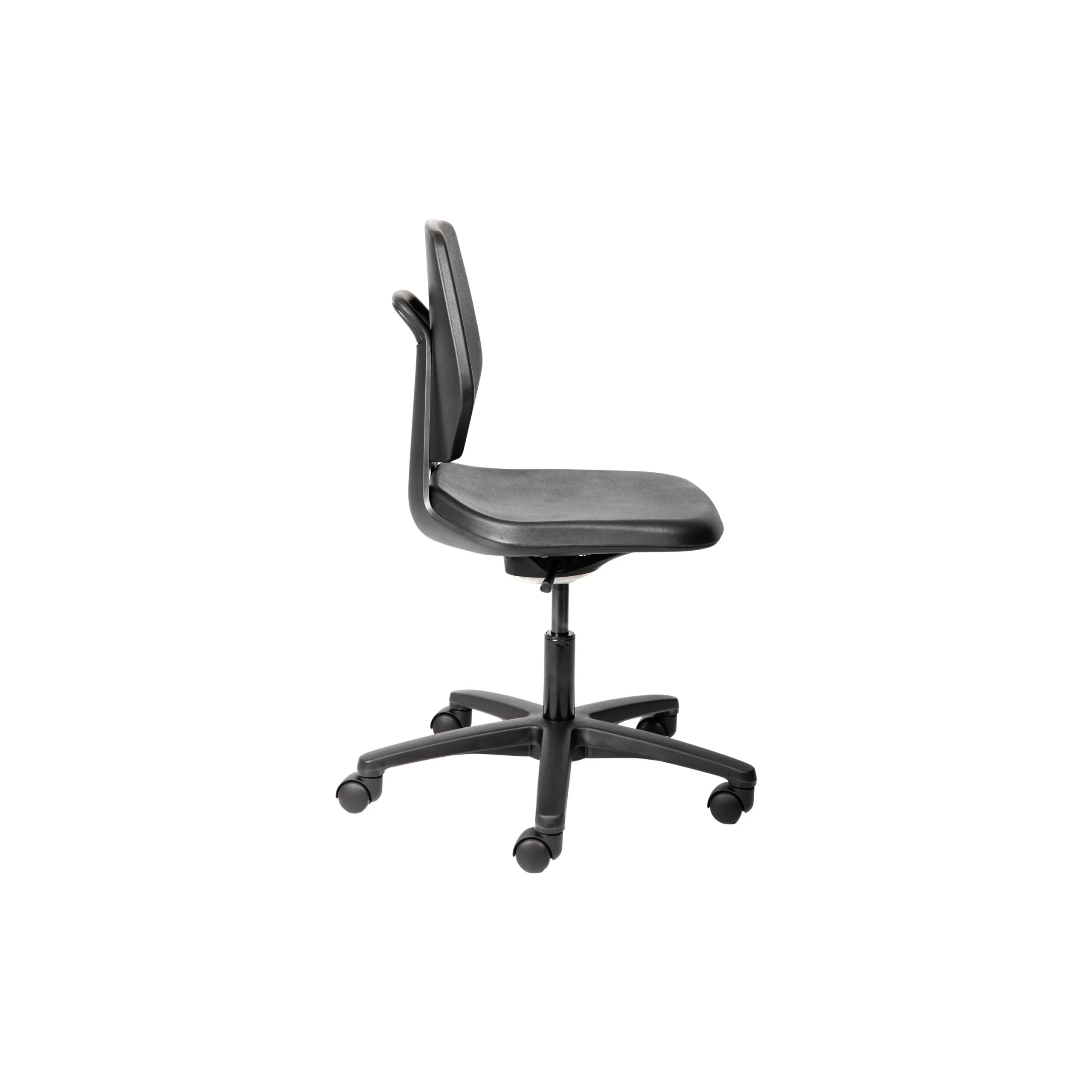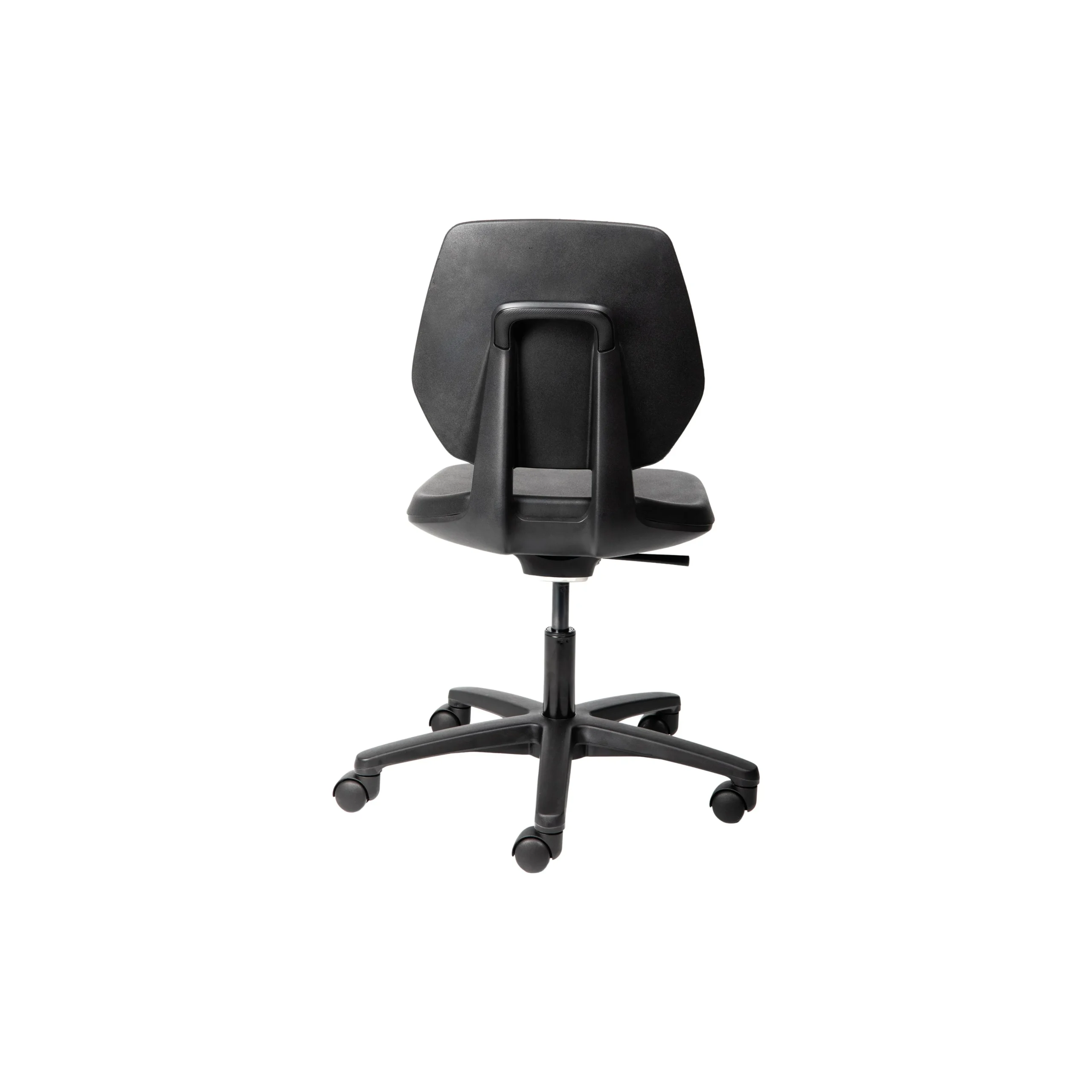 Polyurethane shell, body balancing upright lock/tilt mechanism and height adjustable gas lift on a 5 star base with standard castors.