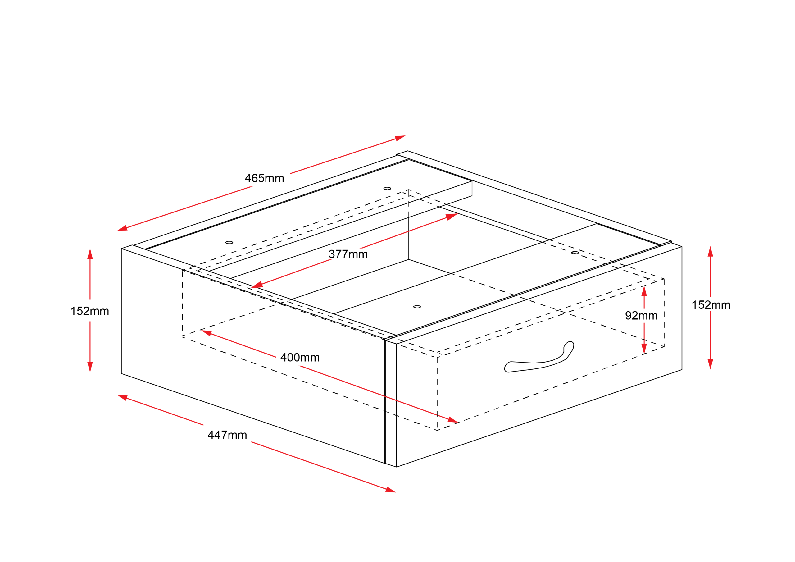 - 465mm W x 447mm D x 152mm H