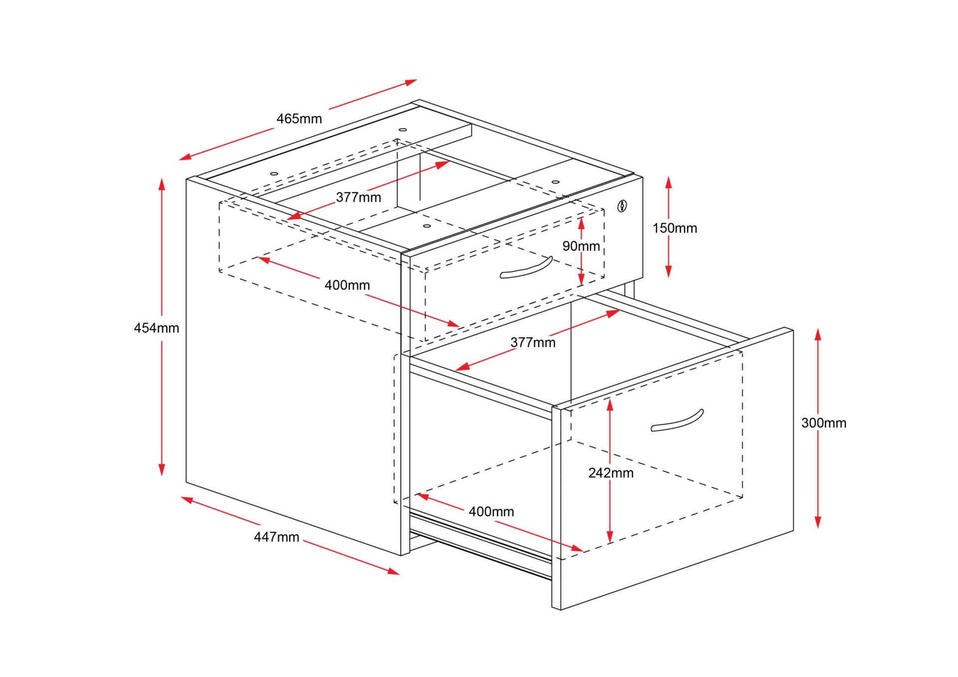 - 1 Personal Drawer + 1 File Drawer