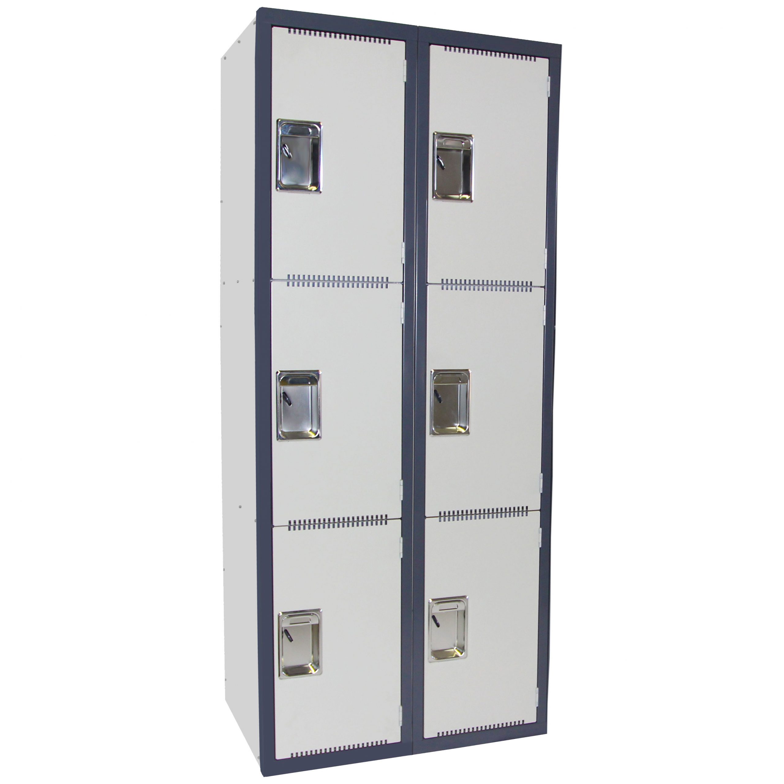 - Each locker offers ventilation slots on the top and bottom of each door and a name plate insert