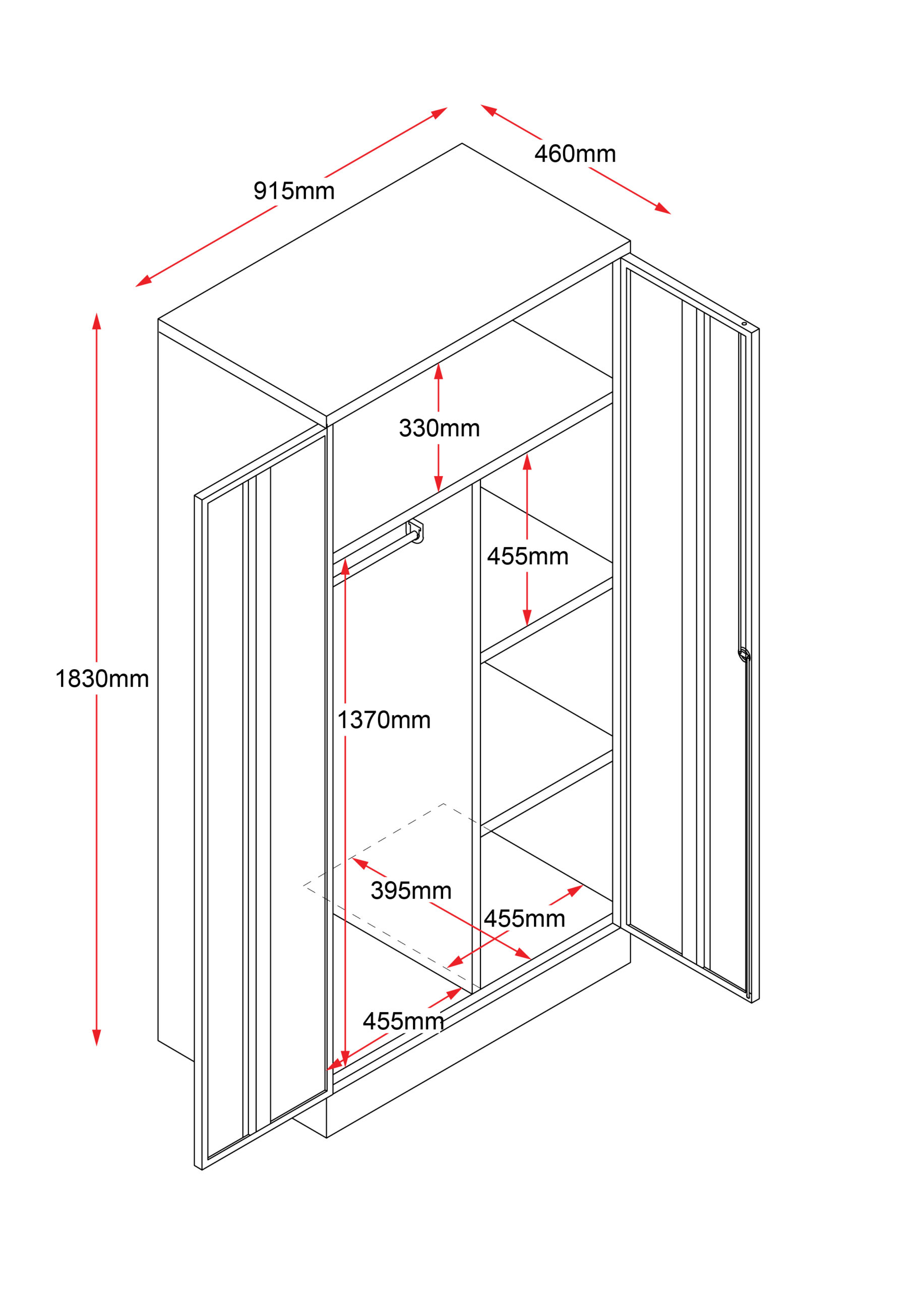 - 1830mm H x 910mm W x 450mm D
