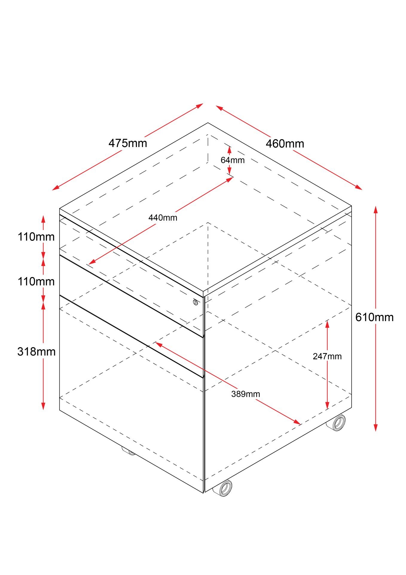 - 610mm H x 460mm W x 475mm D