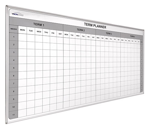 No school can be with out one. 4 school terms divided into 11 weeks for quick and easy reference. Laminated graphic surface with permanent lines. 3 Sizes available.
