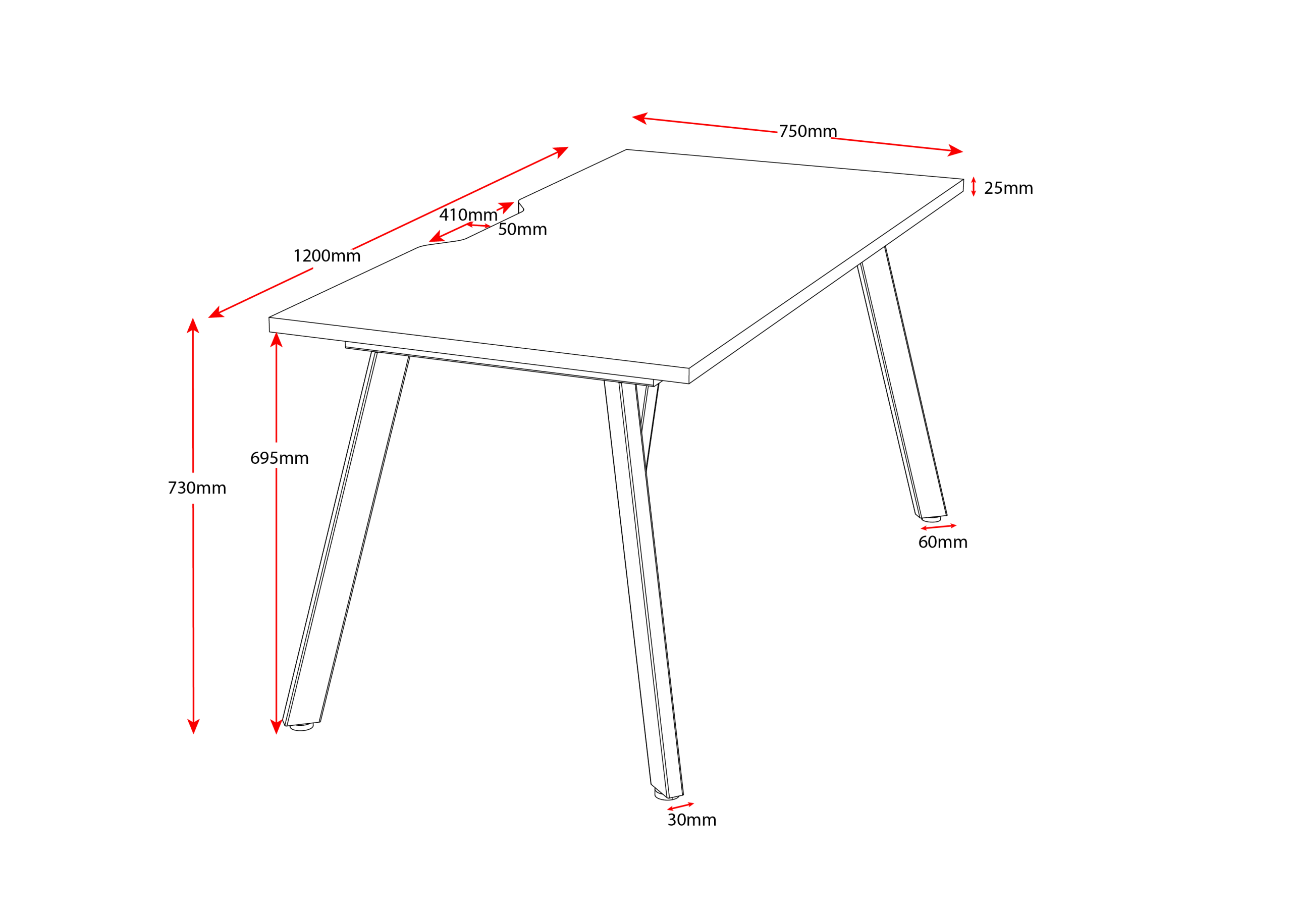 Choose between 1200mm, 1500mm or 1800mm desks